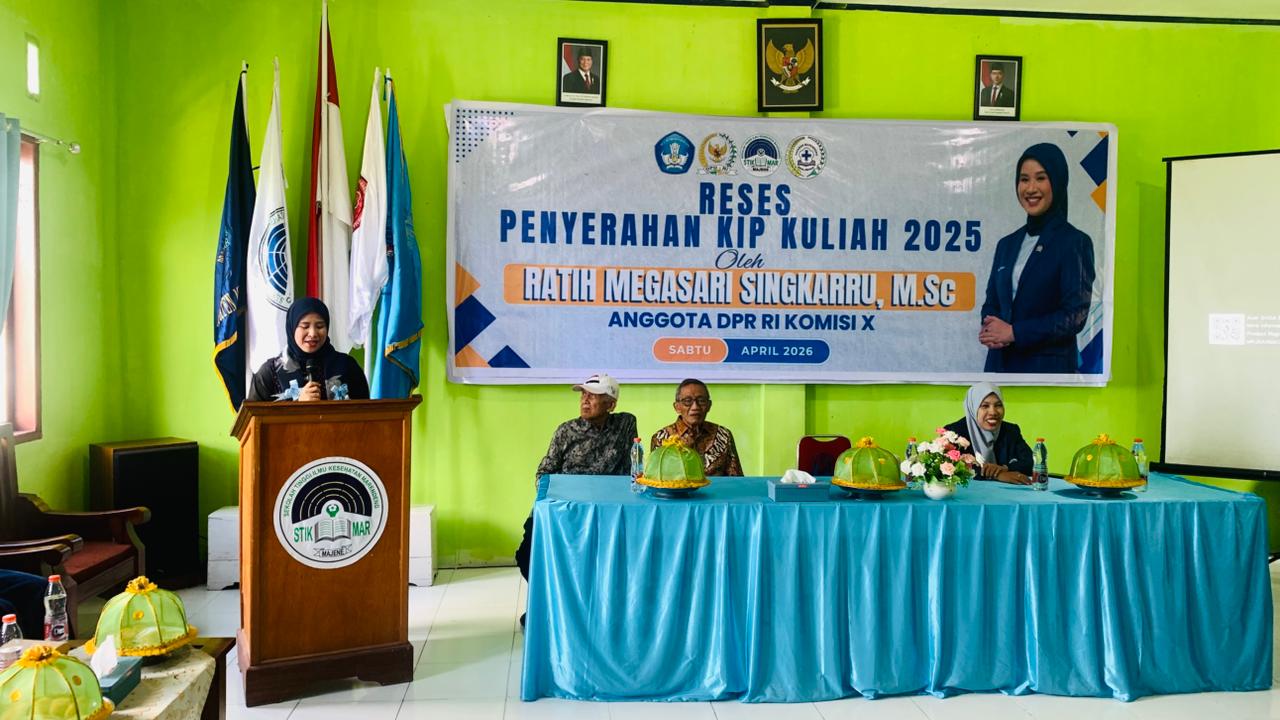 Penyerahan Kartu Indonesia Pintar (KIP) Kuliah tahun 2025 di STIKES Marendeng Majene berlangsung khidmat di aula kampus, Sabtu (11/4/2026). Anggota DPR RI, Ratih Megasari Singkaru, hadir langsung dalam agenda reses tersebut sebagai bentuk komitmen nyata dalam memperluas akses pendidikan tinggi bagi generasi muda di Sulawesi Barat.